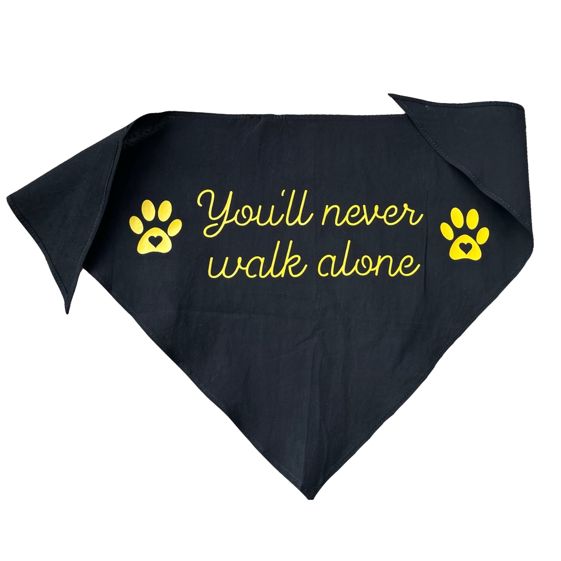 Halstuch für Hunde in schwarz mit gelbem Druck.